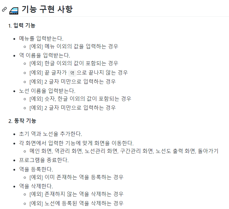 지하철 노선도 미션의 기능은 크게 네 가지로 나눠볼 수 있습니다.