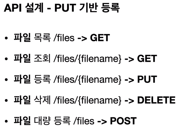 PUT /files/{filename}이기 때문이다. - 이게 바로 POST와 PUT의 차이점이다. 앞 chapter에서 보았다.